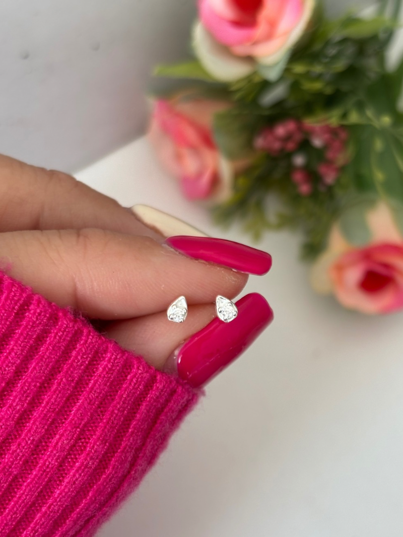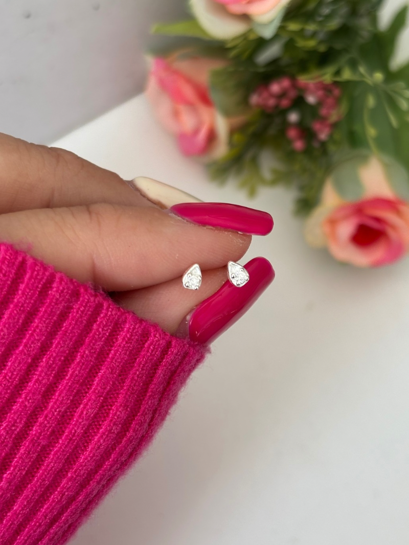 Caravanas de plata 925 en forma de gota con circonia central. Tamaño aproximado: 3mm x 4mm. Cierre mariposa. Se venden por par.